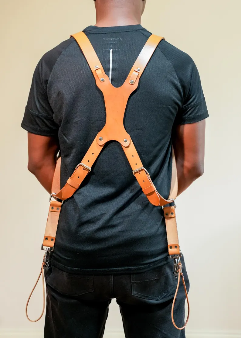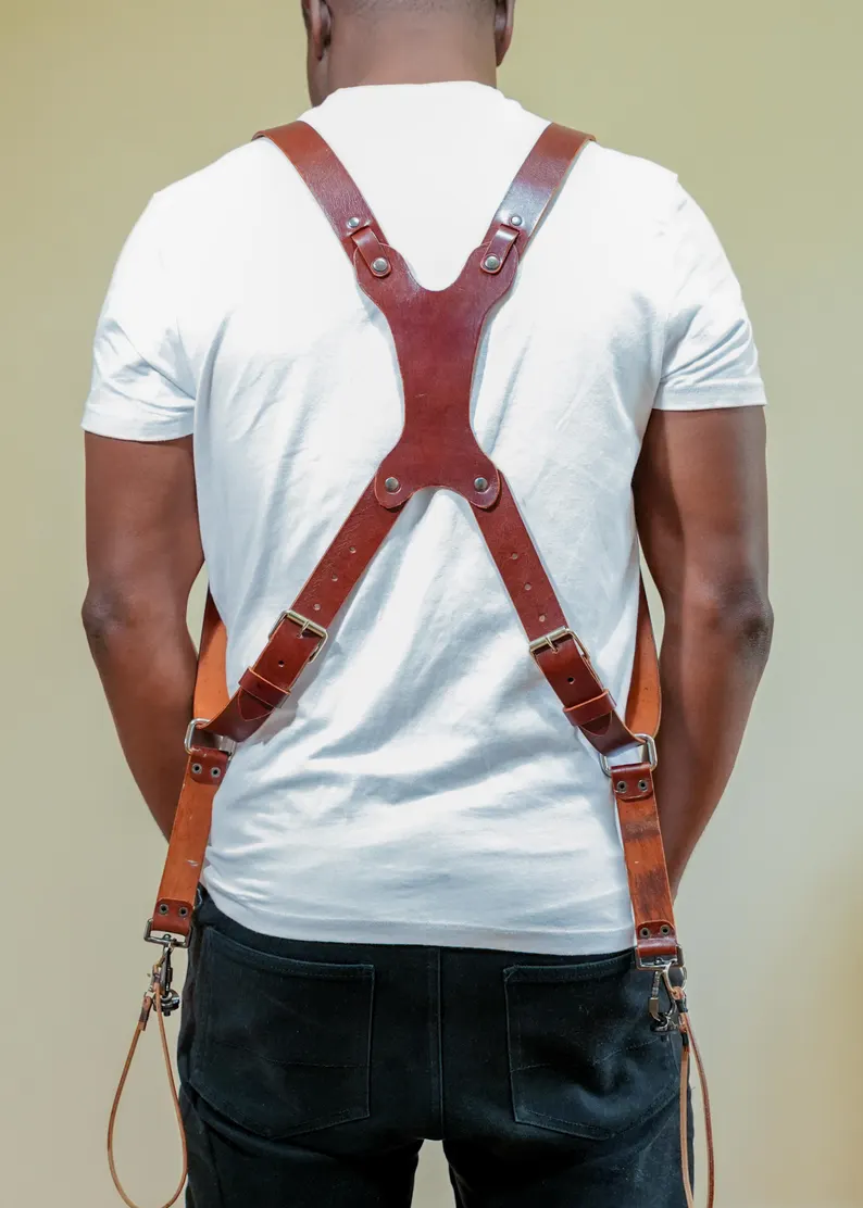 Double Camera Strap made with genuine cowhide leather material